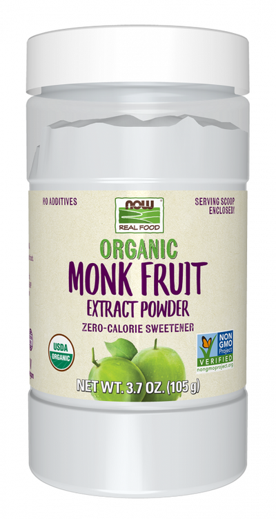Monk fruit is also known as Luo Han Guo. Monk fruit is significantly sweeter than sugar, up to 200 times as sweet and is a fantastic alternative to sugar in beverages. NOW Real Food® Organic Monk Fruit Extract Powder has a delightfully vibrant, sweet taste with very little aftertaste.