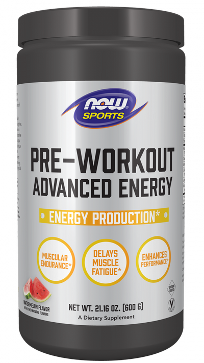 NOW® Sports Pre-Workout Advanced Energy Powder features betaine, creatine, beta-alanine, carnitine, arginine, and caffeine to help you stay focused and energized so you can train harder and longer.* This formula has betaine to help promote endurance and optimize muscle output during exercise, and beta-alanine to delay muscle fatigue and promote rapid recovery from intense exercise.* Arginine is included to support nitric oxide production and nutrient delivery.* With 200 mg caffeine per serving, this great-tasting supplement helps you maintain physical energy and focus during your workout.*