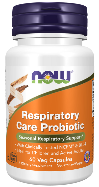 NOW® Respiratory Care Probiotic is a probiotic combination featuring L. acidophilus NCFM®, which has been used in over 60 scientific studies. When used alone or in combination with B. lactis Bl-04, NCFM® has been shown to support a robust, but balanced, immune response to seasonal respiratory challenges, as well as to support an active lifestyle.* NCFM® can rapidly populate the intestine and adhere to the intestinal wall, which is helpful for use during and after temporary disruptions to intestinal microbiota.*