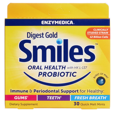 Digest Gold Smiles Oral Health with HK L-137 Probiotic, 30 Quick Melt Mints, by Enzymedica