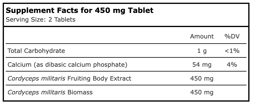 Full Spectrum Cordyceps 450 mg 60 Tablets by Planetary Herbals