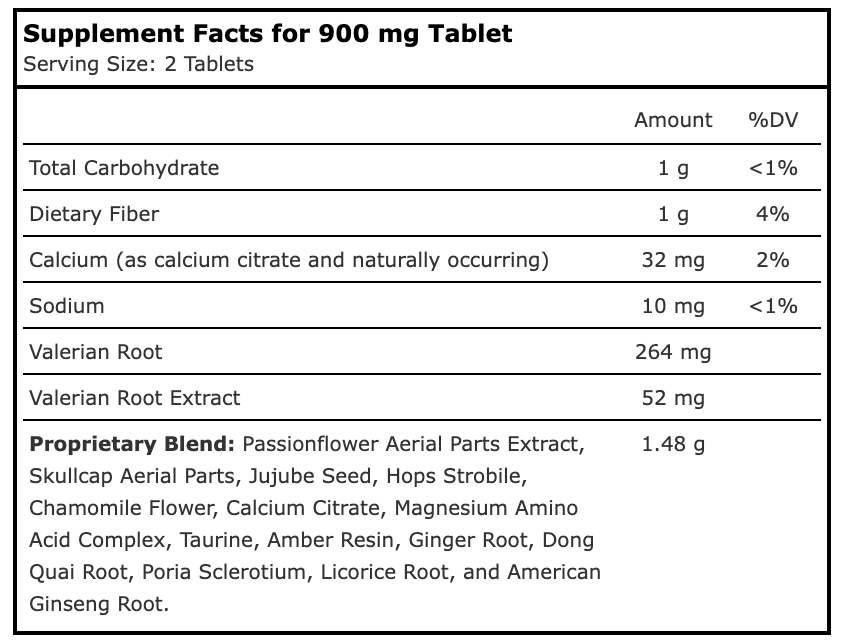 Suggested Use: 2 tablets 30 minutes before bedtime.