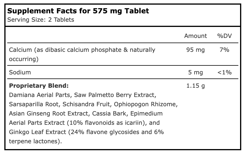 Other Ingredients: dibasic calcium phosphate, microcrystalline cellulose, stearic acid, modified cellulose gum, and silica.