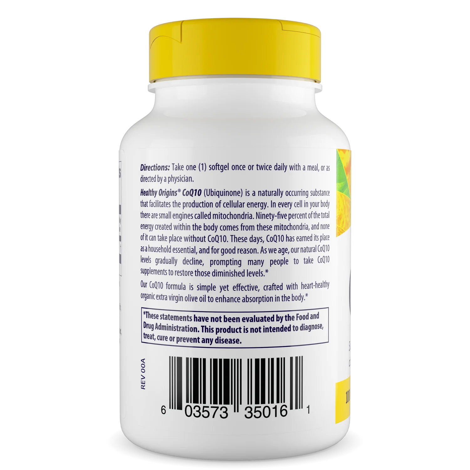 Healthy Origins CoQ10 (Ubiquinone) is a naturally occurring substance that facilitates the production of cellular energy. In every cell in your body there are small engines called mitochondria. Ninety-fIve percent of the total energy created within the body comes from these mitochondria, and none of it can take place without CoQ10. Our Natural (trans-isomer) CoQ10 is produced exclusively through a yeast fermentation process which is bio-identical to the CoQ10 produced within the body