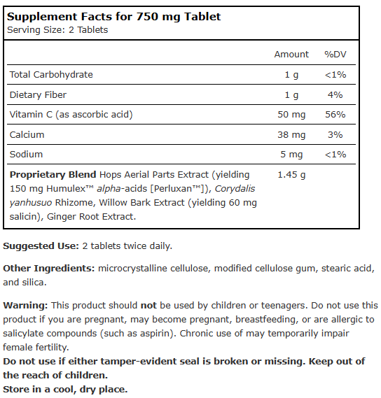 Stress. Tension. Aches and minor pains. No, they don't have to be accepted as part of modern life. Planetary Herbals brings you Corydalis Minor Pain Relief, a safe, effective herbal formula that soothes minor pain, inhibits COX-2 inflammatory response, and strengthens the body with antioxidants. The formula contains corydalis, from Chinese herbalism; hops from European herbal traditions; willow bark, used for centuries for natural minor pain relief; and ginger, which supports the body's healthy defenses, soothes minor pain, and fortifies with powerful antioxidants and COX-2 inhibitors.