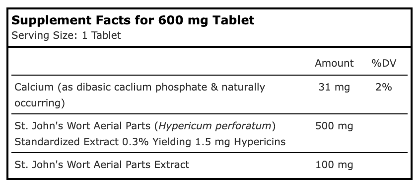 - Standardized to 0.3% Hypericins