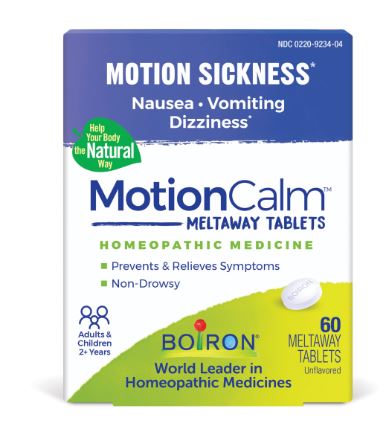 Take the worry out of travel with MotionCalm by Boiron. This homeopathic medicine prevents and relieves nausea, vomiting, and dizziness associated with travel-related motion sickness.* It’s also useful for motion sickness from amusement rides or video games.* Convenient and easy to use, the meltaway tablets dissolve in the mouth without food or water. Take the evening before and day of travel to prevent motion sickness or take on the spot whenever symptoms strike.